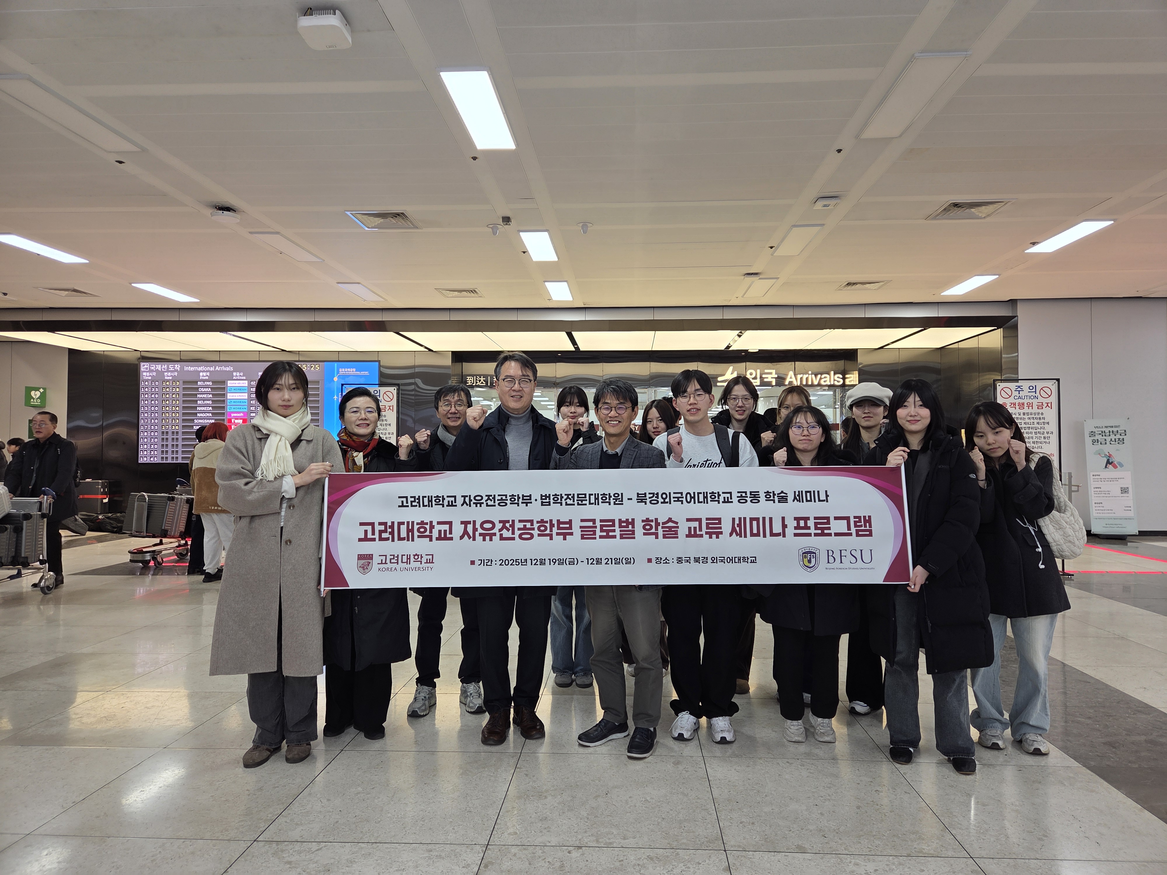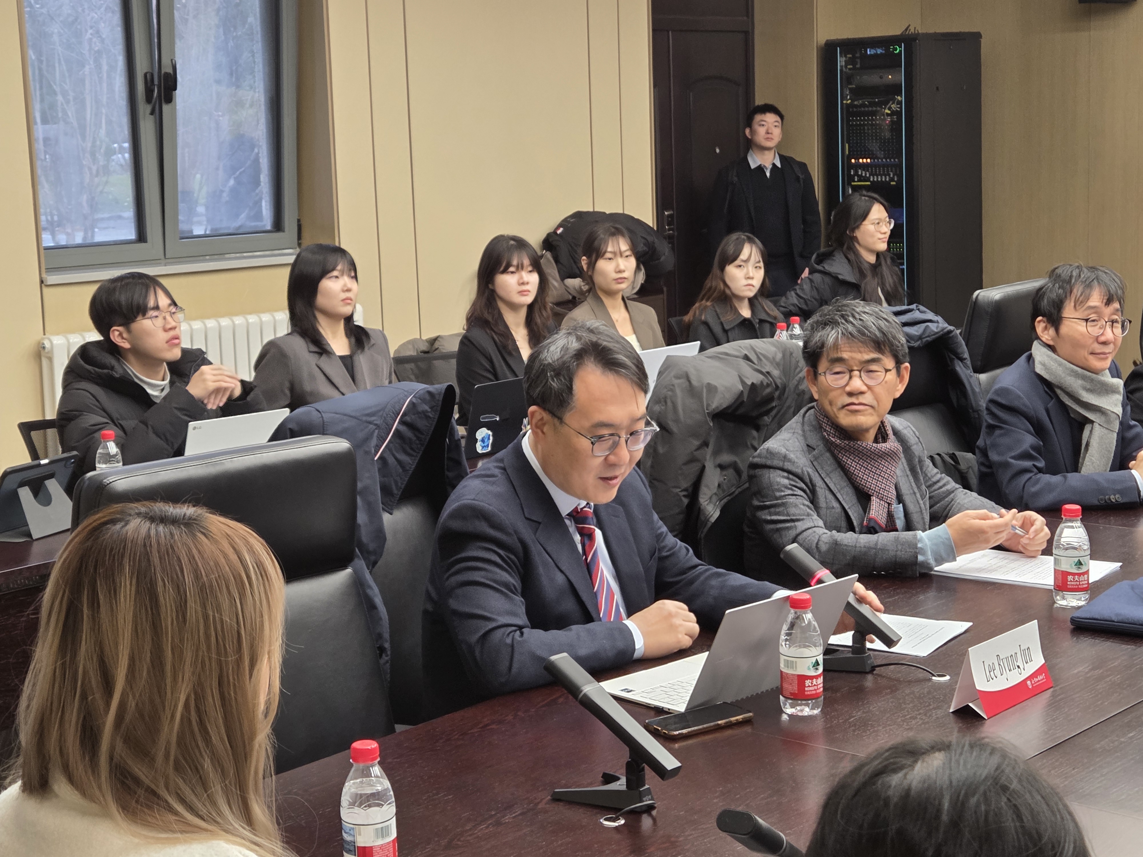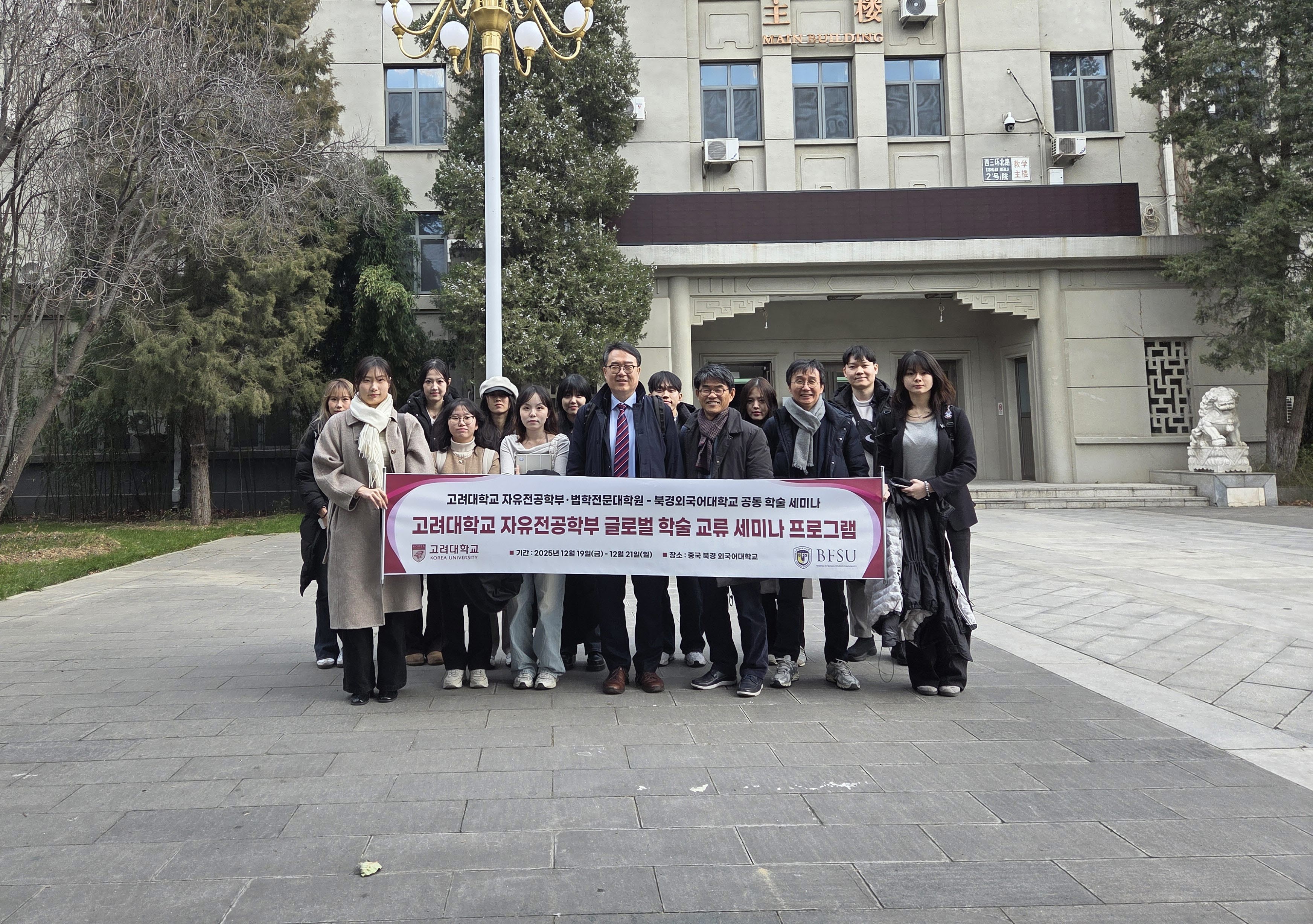 12월 19일 중국 베이징외국어대학교(Beijing Foreign Studies University) 동캠퍼스 Musi Hall에서 ‘Academic Seminar and Students Exchange’가 개최되었다. 이날 학생 학술교류 세션에서는 공유경제 하 플랫폼 노동에서의 근로자성 판단의 법리, 텍스트 및 데이터 마이닝(TDM) 예외에 관한 입법 방향의 비교법적 검토, 디지털 자산 상속에 관한 입법적 고려―해외 사례와 국내 시도를 중심으로 한 주제들이 발표되었다. 이어 12월 20일에는 베이징 차오양구 Xiaoyun Center A동 18층에 위치한 Beijing Xingquan Law Firm에서 ‘Seminar on the Illegal Information Deletion’이 진행되었다. 이날 세미나에서는 학생 발표는 이루어지지 않았으며, 법학전문대학원 학생들과 학부장, 그리고 로펌 측 변호사들이 발표를 맡아 관련 주제에 대한 논의를 진행하였다. 발표 이후에는 베이징외국어대학교 교수들과 고려대학교 법학전문대학원 교수들이 함께 참여하여 발표 사안에 대한 토론이 이루어졌다.